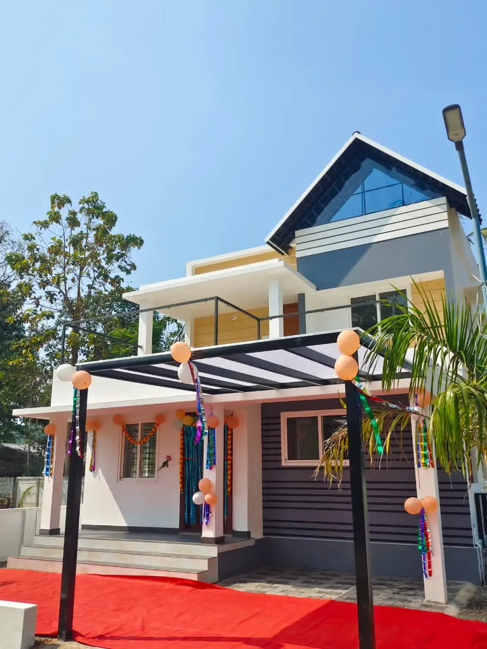 Welcome to Villa Project OMG Lavender, a luxurious retreat nestled in the serene landscape of Elavoor Kavala, Angamaly. Our villas boast a robust Load bearing structure with Rubble Foundation, ensuring longevity and stability. Step into elegance through the Branded Steel frame & shutters of the Main Door, while the WPC Frame with Flush shutters adorn the Internal Doors, offering a seamless transition between spaces. Bathrooms feature PVC frame with PVC Shutters, marrying functionality with style. Painting by Asian/Berger or Equivalent brands adds a touch of finesse, complemented by UPVC sliding windows that invite ample natural light. Revel in the opulence of Vitrified Tiles adorning the Living, Dining, Kitchen, Bedroom, and Balcony, as well as the Vitrified Tile Sit out flooring. Safety meets sophistication with Anti-Skid Designer Tiles in Bathrooms and Heavy Duty Cement Designer Tiles in the Portico Floor, protected by a Partial Truss with Roofing Sheet Portico Roof.